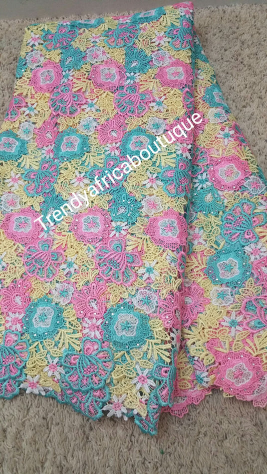 Clearance: Multi color African Cord-lace fabric. guipure-lace fabric. Quality fabric. Sold per 5yards