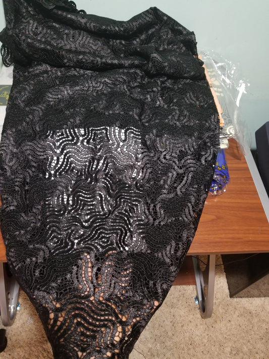 • Top quality Black Guipure, Cord-lace fabric. Luxury super quality, soft texture beautiful design for Nigerian/African party outfit. Sold per 5yds, price is for 5yds. Super swiss made Cord lace