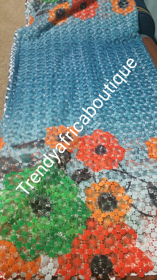 Clearance: Excellent Quality swiss Multi color cord-lace fabric for making Nigerian/African party wear. Sold pet 5yds. African guipure-lace