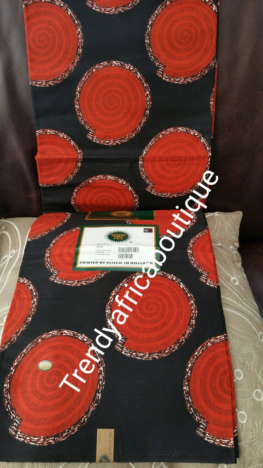 Beautiful African cotton Wax print fabric in black/orange. High quality Ankara print. Sold per 6yds.
