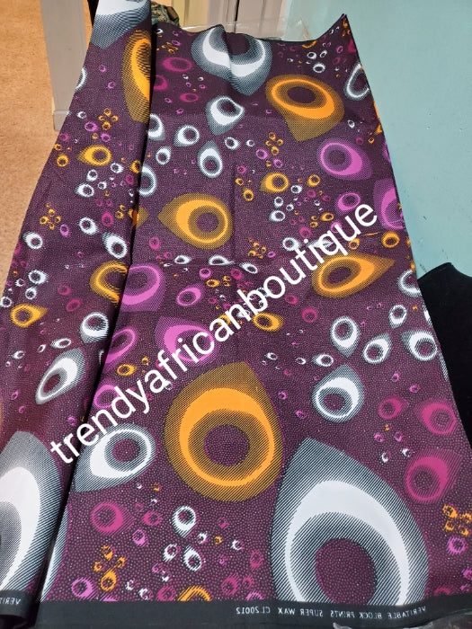 Purple hitarget veritable cotton Ankara wax print fabric. Sold per 6yds. Price is for 6yds. Soft texture. Excellent quality for making fabulous African outfit