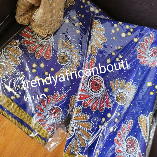 • Cream/orange/royalblue Veritable African wax print fabric. 100% cotton Ankara print for making African party outfit for men and women. Sold per 6yds and price is for 6yds. Soft luxurious Quality fabric