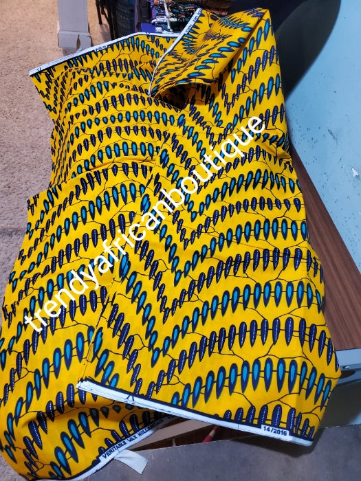 • Yellow African  Ankara wax print. 100% cotton fabric for making African dresses and more, Sold per 6 yards, price is for 6yards
