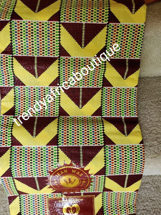 • New arrival quality yellow kente design African cotton  Wax print fabric. High quality Ankara print. Sold per 6yds. Excellent quality and background brocade design