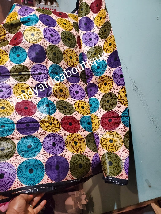 Supreme ankara cotton wax print. Multi color Cotton Ankara. Lustrous quality print sold per 6yds. Price is for 6yds.