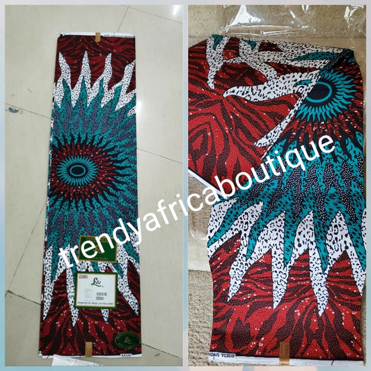 Veritable Holland Wax print fabric. Quality Ankara wax print in red background color. Sold per 6yds, price is for 6yds