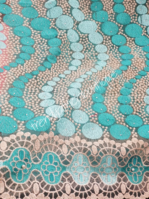 • Back in stock: Mint green embriodery George fabric. Top quality Indian-George for making Nigerian/African party dress. 5yds silk George + 1.8yds matching net blouse. Contact us if you are interested in Aso-ebi order