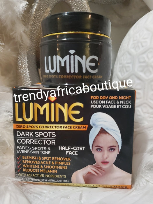 • 3pcs set: Lumine half cast lightening and toning body lotion, lumine Zero dark spots corrector face & body cream and 1 lumine soap face and body