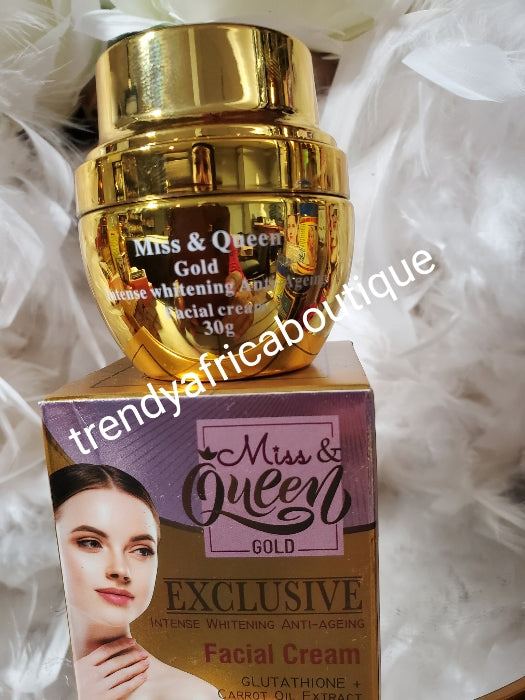 • X 1 jar. Miss & queen Gold Exclusive intense whitening anti aging face cream 30g x 1. Glutathion, carrot & ginseng
