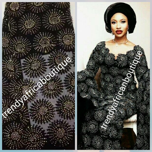• Special offer Beaded/crystal stoned bead-dazzled French lace fabric for celebrant. Classic, quality design French lace in black. Sold per 5yds, price is for 5yds