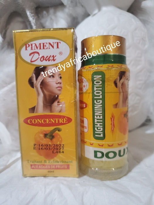• 6 in 1 combo of Piment doux classique lotion, serum, face cream, knuckle cleanser, soap and tube cream. Super lightening, and clears hyperpigmentations areas