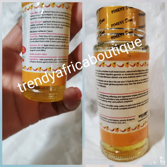 • Piment doux lightening and treatment oil. Glutathion + Kodjic. 7 days action. 60mlx1. Can be Mix into body lotion