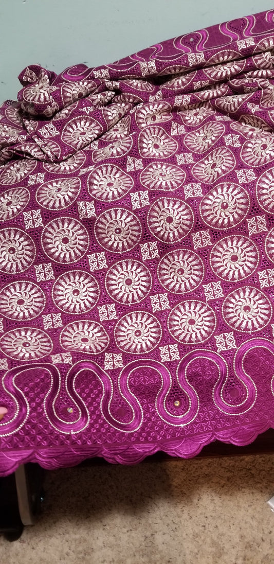 • Exclusive swiss lace fabric in magenta color.  Nigerian traditional celebrant Swiss lace embroidered with quality, soft beautiful design. Sold per 5yds