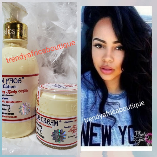 Combo set: Original Golden face body milk 250ml, triple action whitening face cream. Fades dark spot, acne, pimples and the 60ml golden face whitening serum. For all skin type. Use day and night.