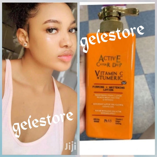 • 3pcs combo of Active Caviar with Vitamin C & tumeric skin firming, whitening and glowing  body lotion, face cream & active caviar serum/oil for all skin types. Skin brightening & glowing