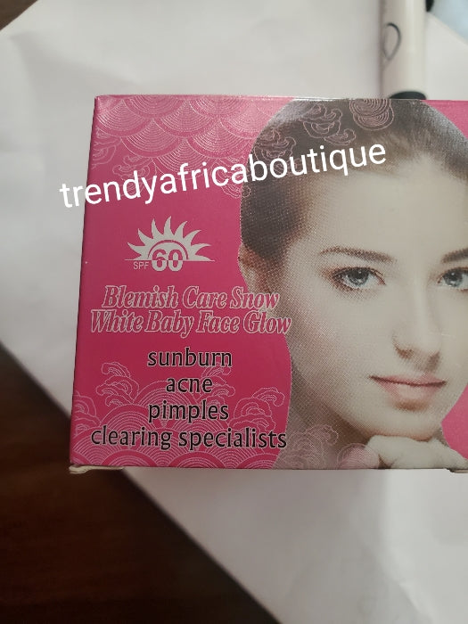 • Another BANGA!!  Blemish care snow white baby face glow, anti SUN BURN, pimples & acne face cream. 7 days action with spf60. 30g x 1