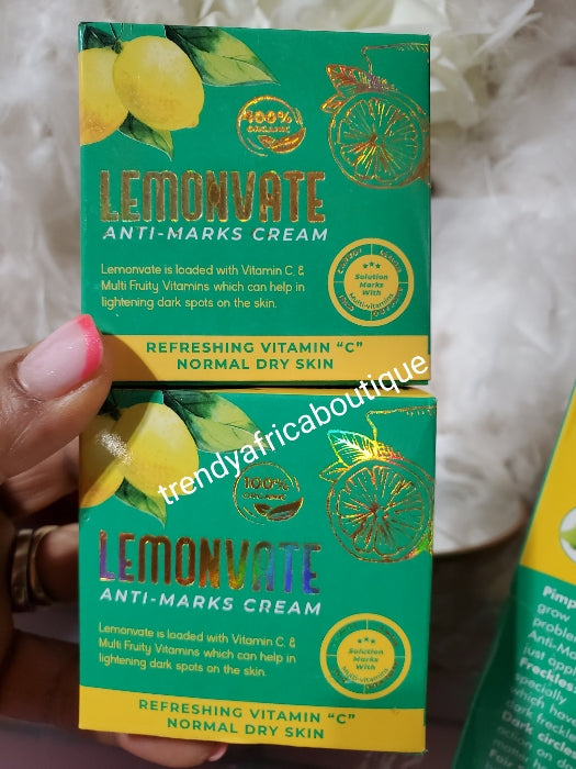 • Another Banga! X 2 jar: Lemonvate anti-marks cream with lemon Extracts. Enriched wirh Vitamin C, super effective in lighting dark spots on any parts of the body; dark knuckles, dark spot on face, feet & more x 2 sale
