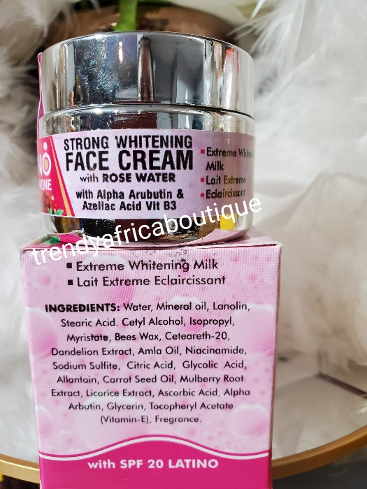 • Another Banga! Latino Glutathion halfcast strong whitening face cream with Rose water.  Alpha arbutin, azelaic acid & B12. 50g x 1