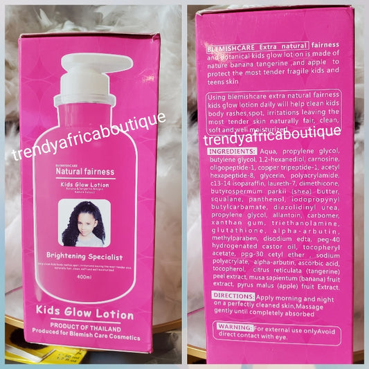 • Another banga: Blemish care Natural fairness brightening specialist for your kids & teens glow halfcast body lotion 400ml.  Top grade formula.👌. Formulated with Natural extracts. Ages 1yr and up. Suitable for adult skin as well