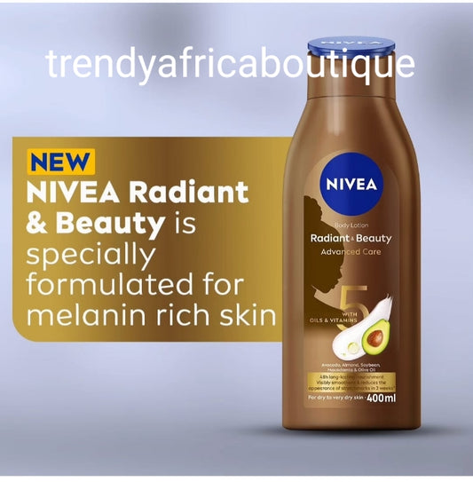 • Another Banga: NIVEA Radiant & beauty advance care body lotion.  Visibly smooth and clear the appearance of stretch marks in 2 weeks. For melanin rich skin. 400ml x 1 bottle sale