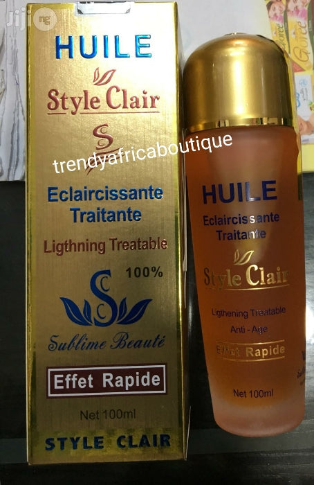 • Back in stock!! Style Claire oil. For all skin type and color; Amazing anti-aging moisturize,  restore damage skin. Anti aging, anti stretch marks, sun burn etc.Leaving your skin clear, bright and glowing. 100ml bottle. Mix with body lotion or cream
