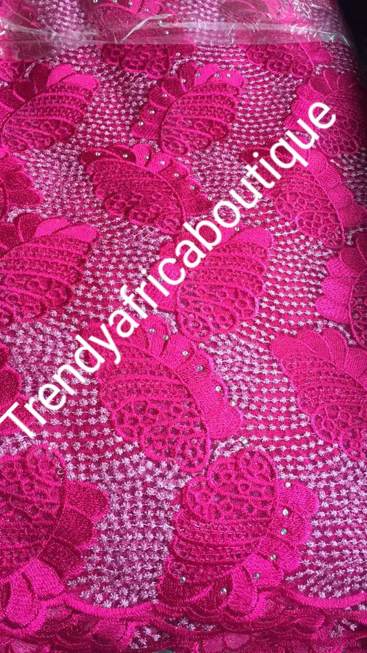 Clearance: Hot pink African french lace fabric. Original quality. Use to make Nigerian party dress. Sold per 5yards.