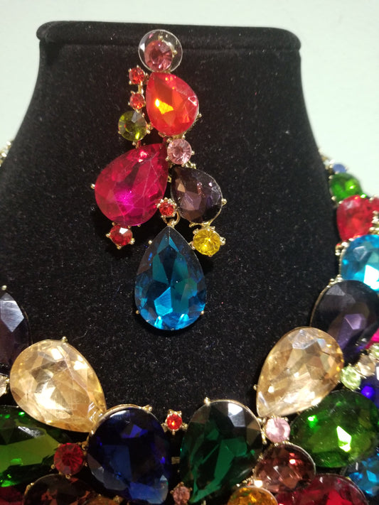 Clearance sale Multi color Crystal stones bridal necklace Jewelry set. Beautiful Long crystal set. 18k gold plated