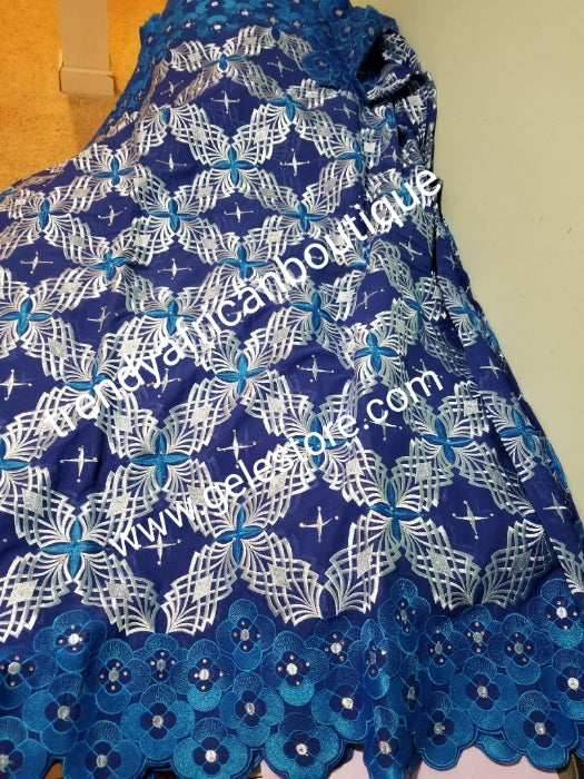 • Clearance Give away price: royal blue Swiss Embriodery Lace fabric with clear crystal stones. Great quality and texture. Sold per 5yds. Price is for 5yds. African lace for making party outfit. Unisex color