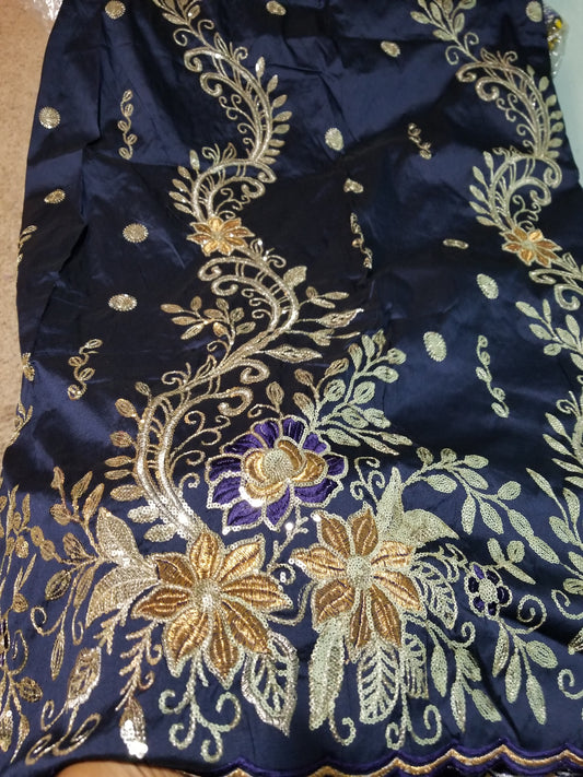 Clearance item: Navy blue taffeta silk Embriodery Geoge fabric. Original quality George for making African party dress. Indian-George sold per 5yards and price is for 5yds. ideal for 1st putting outfit for edo/Igbo traditional wedding
