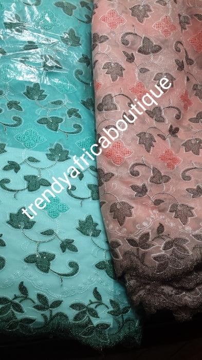 • Clearance turquoise blue/multi color stoned and beads Velvet fabric Original quality beaded and stoned. Use for Nigerian Bridal wrapper/traditional weddings ceremony. Igbo/Edo Bride wrapper in velvet. Sold per 5yds. Price is for 5yds