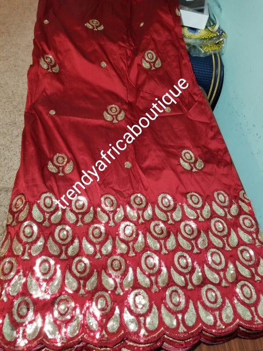 Clearance item: Wine/Gold sequence silk George fabric. Original quality George for making African party dress. Fancy Indian-George sold per 5yards and price is for 5yds. Ideal for Igbo/edo bride 1st outting attire