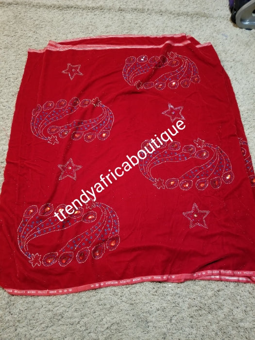 Clearance Red Velvet wrapper. Original quality beaded and stoned. Use for Nigerian Bridal wrapper/traditional weddings ceremony. Igbo/Edo Bride wrapper in velvet. Soft luxurious quality. Sold per 5yards