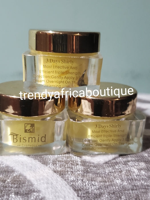 • Back in Stock: Bismid cosmetics 3 days Night  face shirley x 1 jar sale. Triple action formula. Very effective. Small but work wonder!!
