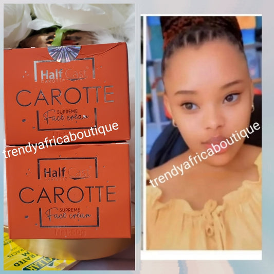 2pcs. Set: Half cast carotte supreme ,(new edition) Restoring and glowing face cream & bar soap. anti-wrinkle, anti spots. Vitamins E, carotte oil and kojic acid.
