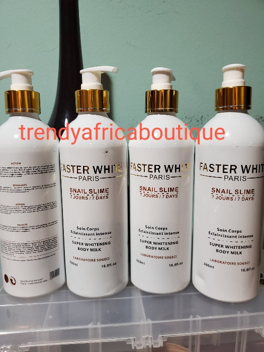 Faster White Paris with snail slime. Is fast whitening & Repair body lotion for all skin type: flawless healthy complexion. 500ml. hydroquinone FREE!!