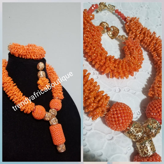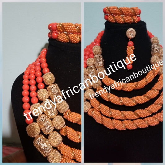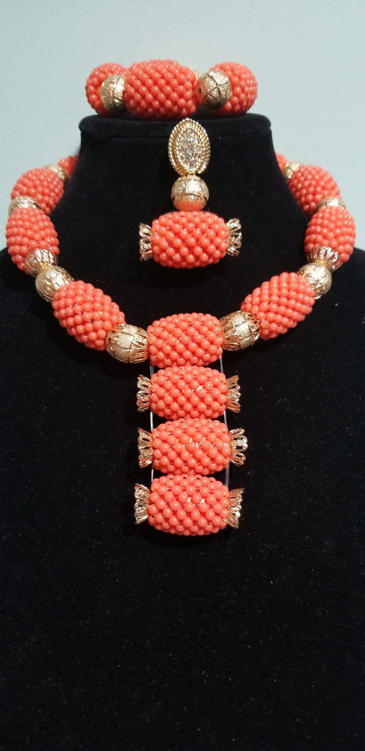 New arrival Coral-necklace set in sweet coral color. Sold as a set. Coral necklace/earrings/bracelet for Nigerian party use
