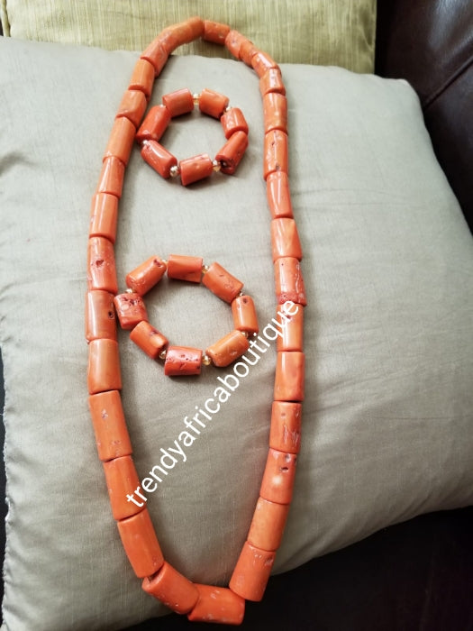 Original Edo Native bead.Coral beaded necklace set for Nigerian/Edo traditional wedding for men. Coral-necklace and bracelet. Big chunky coral