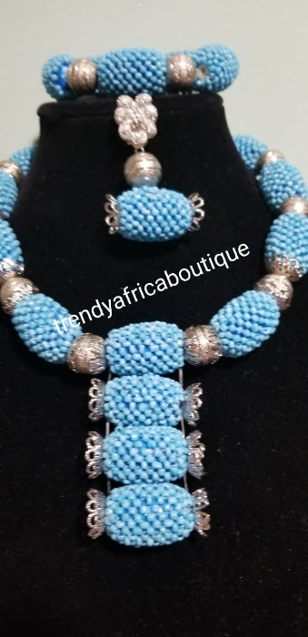 Back in stock: Original Edo /Nigerian coral Beaded-necklace set. 3pcs set of bridal wedding accessories beads latest design with beads stones