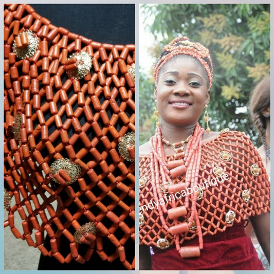 • New arrival Coral-necklace bead Shawl for Nigerian/African Bride. Nigerian/African traditional wedding Accessories for Bride.