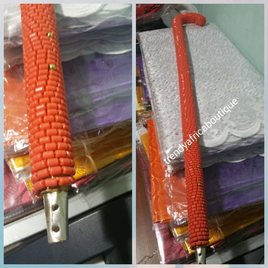 Coral bead walking stick for men. 35" long from top to bottom. Nigerian Traditonal wedding accessories for men. We also have coral-necklace set
