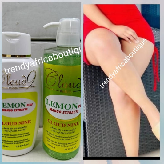 3pcs. Bangar Set: Cloud-9 paris lemon & mango extracts body lotion, serum & shower gel cream. with Lemon and Mango extracts. Fairer, ligher skin complexion