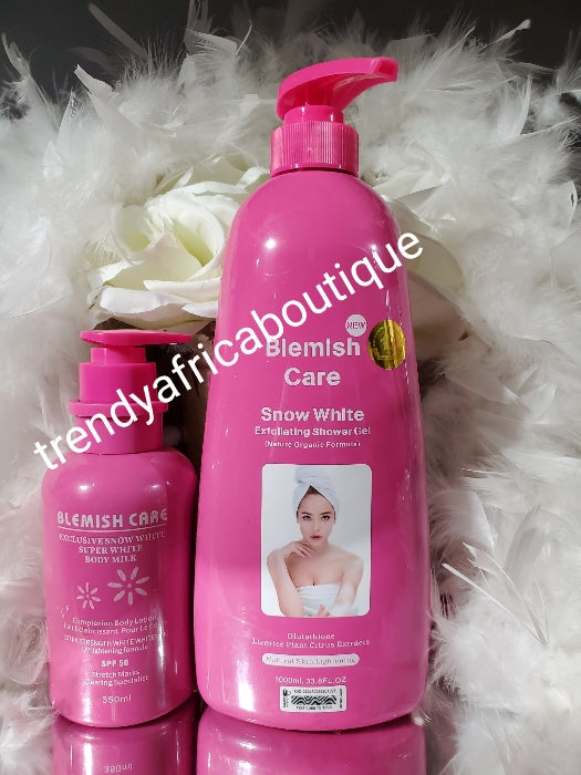 • 2pc set: Blemish care exclusive Snow white body lotion 350ml & Blemish Care Snow white exfoliating shower gel with Glutathion, Licorice extracts and citrus. 1000mlx