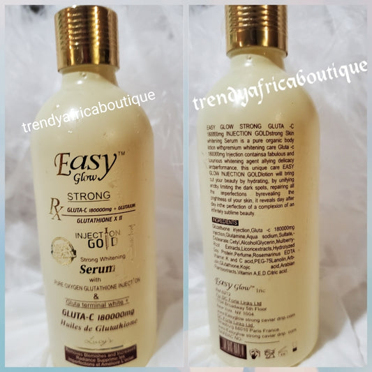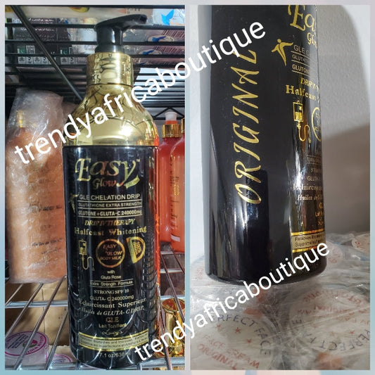 4pcs. (EASY to glow body milk 538ml) Easy Glow strong whitening body lotion 538ml, shower gel 1000ml. Serum 100ml, face cream 50g. Gluta C 180000mg Fast action
