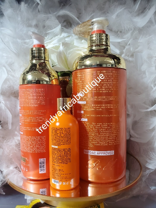 • 3pcs combo:  Authentic Easy Glow strong lightening, glowing body lotion, shower gel & serum with L-Glutathion capsule and carrot extracts 3x skin glowing body