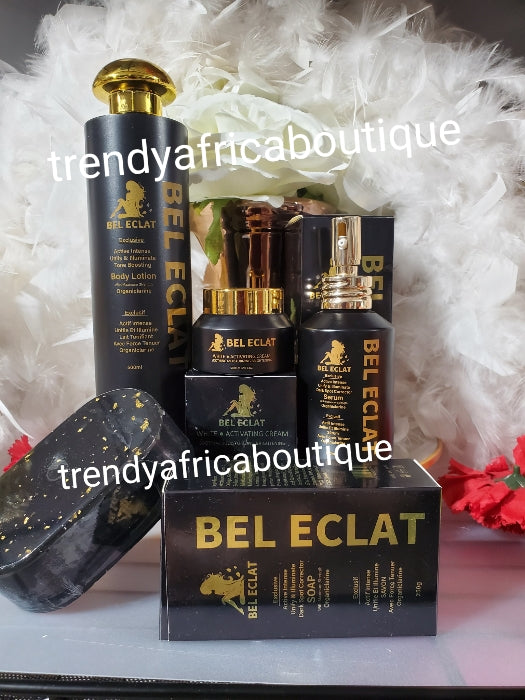 New products alert!!! 4pcs Bel Eclat Exclusive Active intense unifying & illuminating booster lotion, serum, face cream and whitening soap. 💯 organic formula 👌