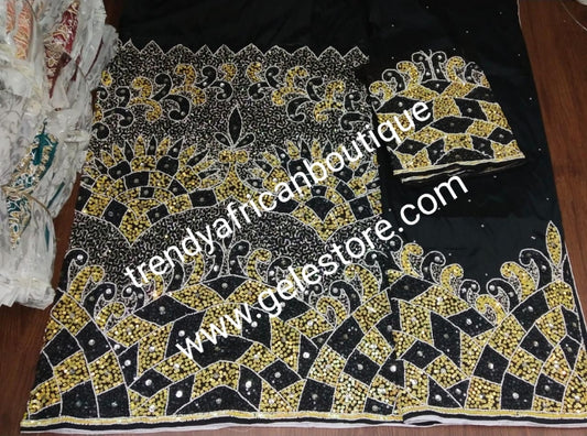 • Ready to ship: exclusive VIP hand beaded and sequence embellishments Taffeta George wrapper. Nigerian traditional Celebrant outfit. Niger/Delta/Igbo women wrapper. Unique  high society party outfit. Sold as set of 2 wrapper +1.8yds blouse
