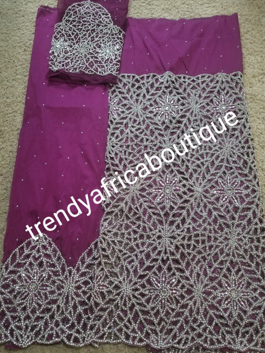 New arrival: Magenta VIP/Celebrant Supper quality Silk George Wrapper for High society Ceremony. Niger/Igbo/Delta women George wrapper comes in 2 wrapper + 1.8 yrds matching blouse. Nigerian Traditional outfit. Hand stoned with silver crystal stones