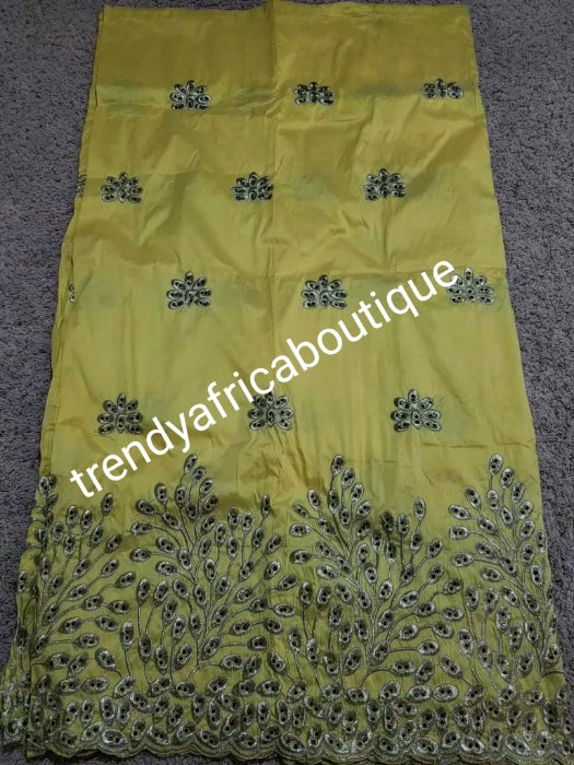 • Nigerian Tranditional George wrapper. Embriodery/stones design in yellow/green matching net for blouse (not sewn). Small-George. Original yellow silk Geoege, embellished with green crystal stones and gold embriodery