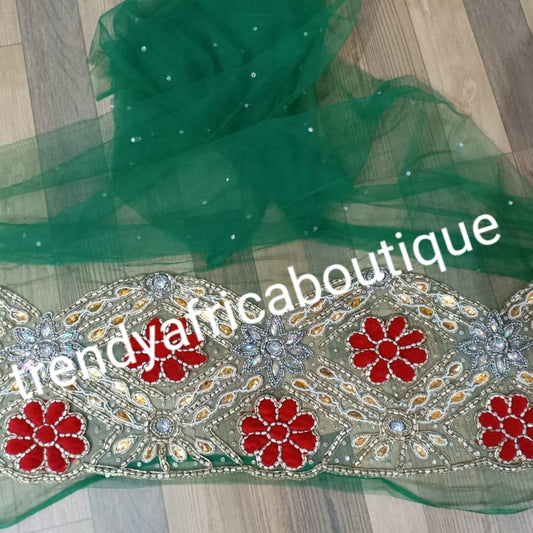Sale: Ready to ship. Teal Green/red VIP Celebrant Nigerian women George wrapper. Niger/Igbo/delta traditional wedding George hand beaded and stoned for special occasion. 2.5yds + 2.5yds + 1.8yds net blouse. Feel the difference in quality Georges.