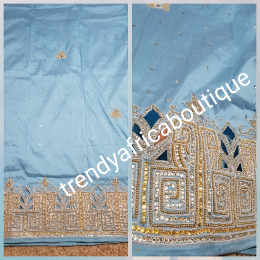 Clearance: Beautiful sky blue Nigerian traditional Igbo/delta women/men wrapper for big ceremoney. Original quality silk George wrapper for Traditional wedding oufit. Sold as wrapper and 1.8yds matching blouse